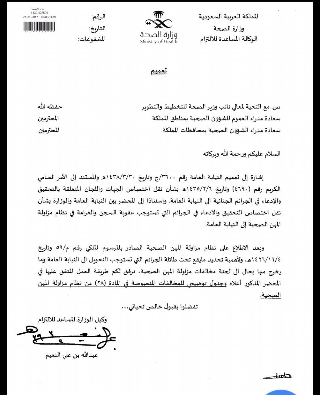 صريح On Twitter موظفي الصحه التشغيل الذاتي Moh Staff وزارة الصحة محاربة الفساد جديد نظام مزاولة المهن الصحية بعض المخالفات المهنية اصبحت من اختصاص النيابة العامة Https T Co Q5nq9lnpml