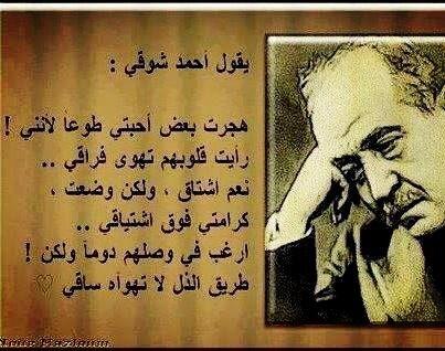 مرافئ في بحور الذات On Twitter يقول احمد شوقي هجرت بعض احبتي طوعا لأنني رأيت قلوبهم تهوى فراقي نعم اشتاق ولكن وضعت كرامتي فوق اشتياقي