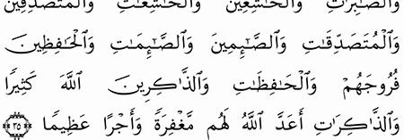 إ ن ال م س ل م ين و ال م س ل م ات و ال م ؤ م ن ين و ال م ؤ م ن ات و ال ق ان ت ين و ال ق ان ت ات و الص اد ق ين و الص اد ق ات و الص اب ر ين و الص اب ر ات و ال خ اش ع ين و ال خ اش ع ات و ال م ت ص د ق ين و ال م ت ص د ق ات